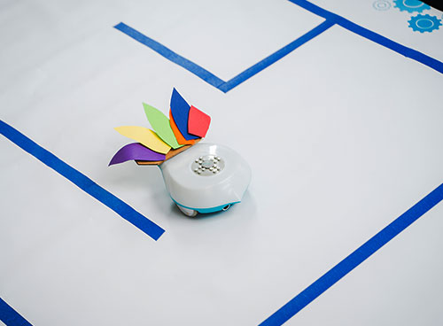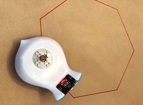 Using the marker port, code and draw geometric shapes. Refine the code and explore angles, speed, and distance while practicing precise movement control. This activity strengthens computational thinking and connects math concepts with robotics.